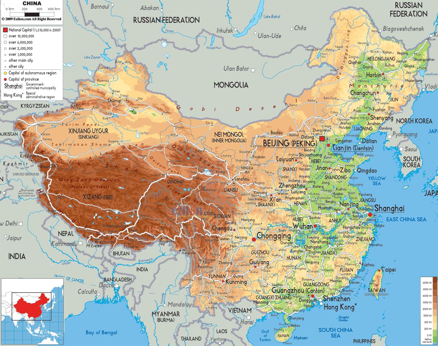 Chiny na mapie. Podbródek mapie (Azja Wschodnia - Azja) do druku. Podbródek mapie (w Azji Wschodniej - Azja) pobierz.
